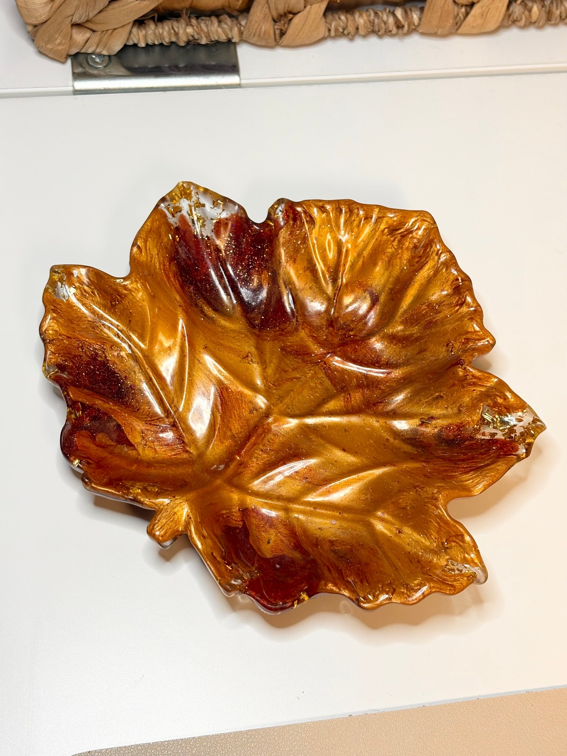 Shimmering with rich tones and a mystical metallic glow, these varied leaf-shaped dishes capture the beauty of nature and a hint of magic. Perfect for holding jewellery, crystals, or simply as a statement piece on your dressing table or altar.
