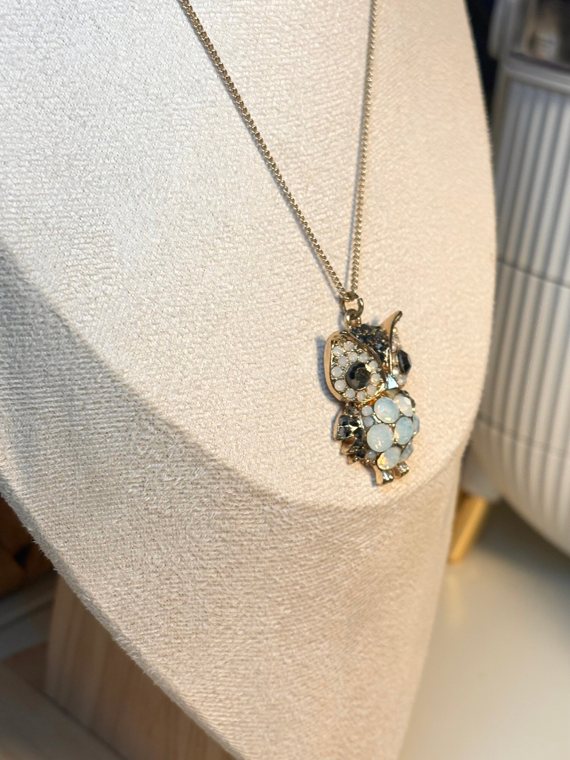• Sparkling crystal-studded owl pendant