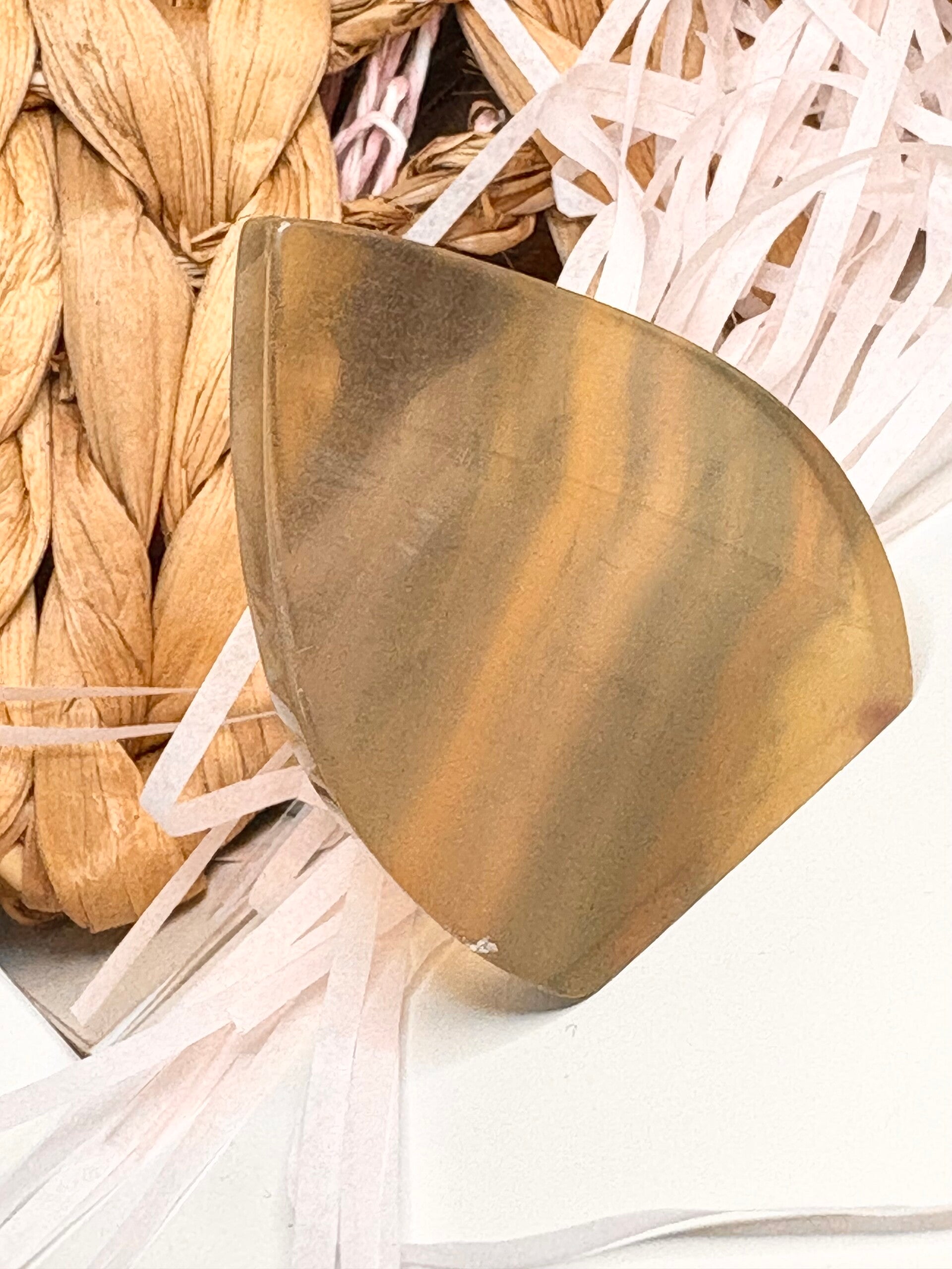 This one-of-a-kind Candy Fluorite flame glows with soft honeyed hues and dreamy banding, reminiscent of golden hour sunlight through crystal glass. Hand-carved and perfectly imperfect, this piece weighs approx. 48g and stands at approx. 5cm tall.