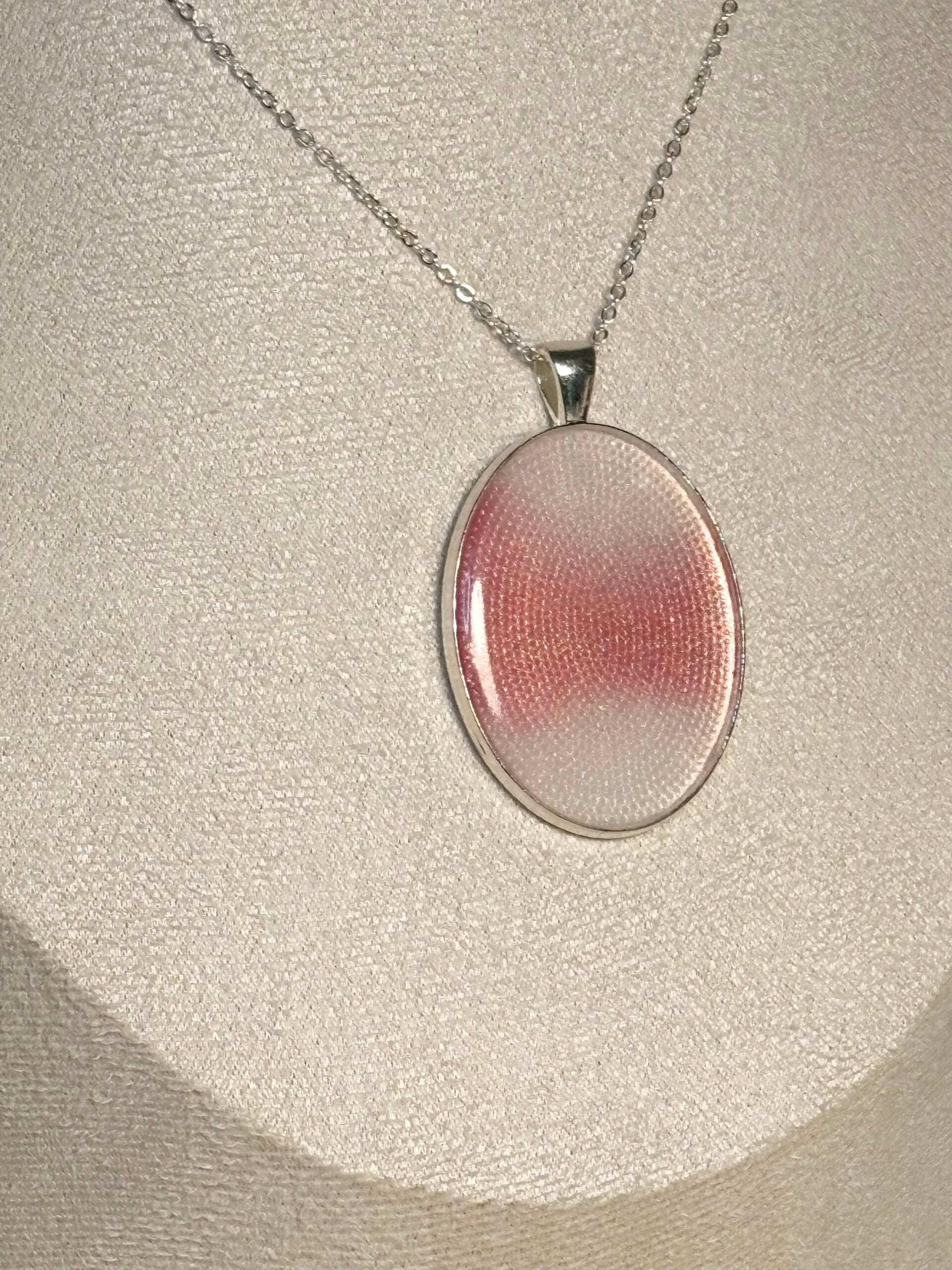 Soft, dreamy, and a little bit magical – this handmade (not by me) resin necklace features a hypnotic blush pink swirl with a delicate gradient that catches the light just right. Think bubblegum spells and moonlit wishes.