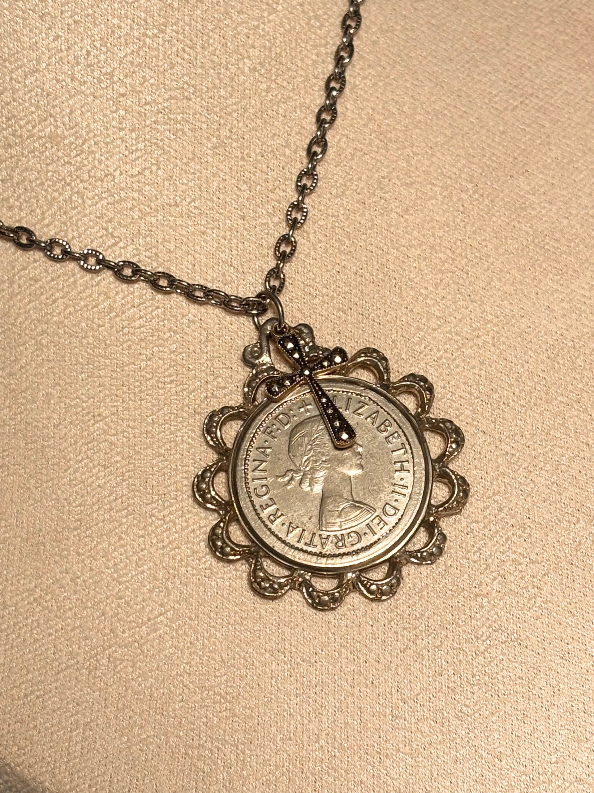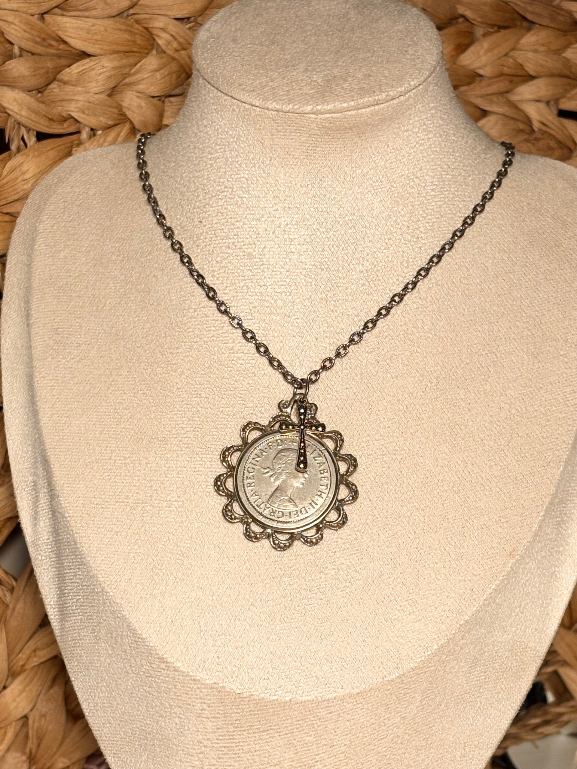 🪙 Double-Sided Detail – Beautifully framed in an ornate silver-tone setting, this pendant displays both sides of the original coin.