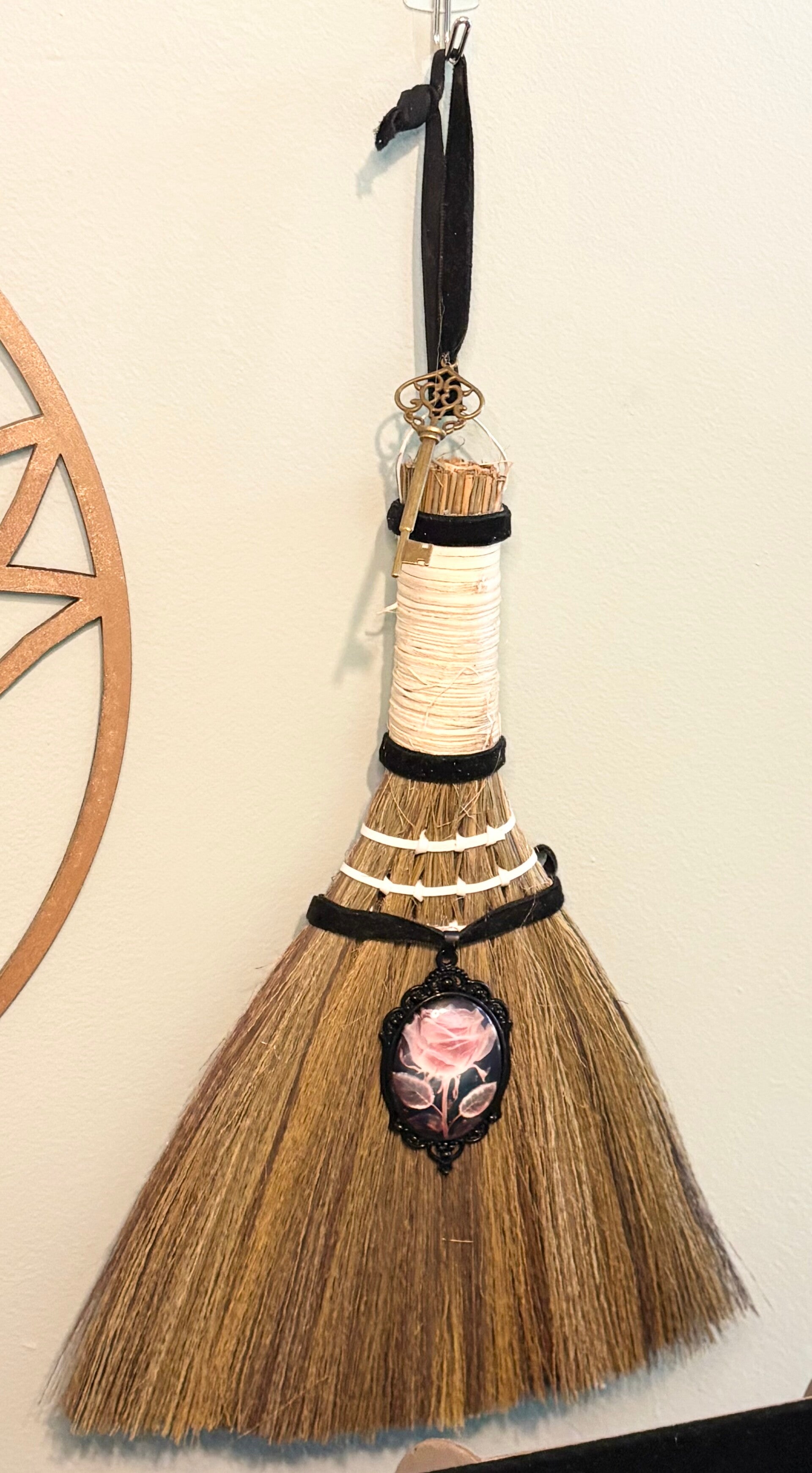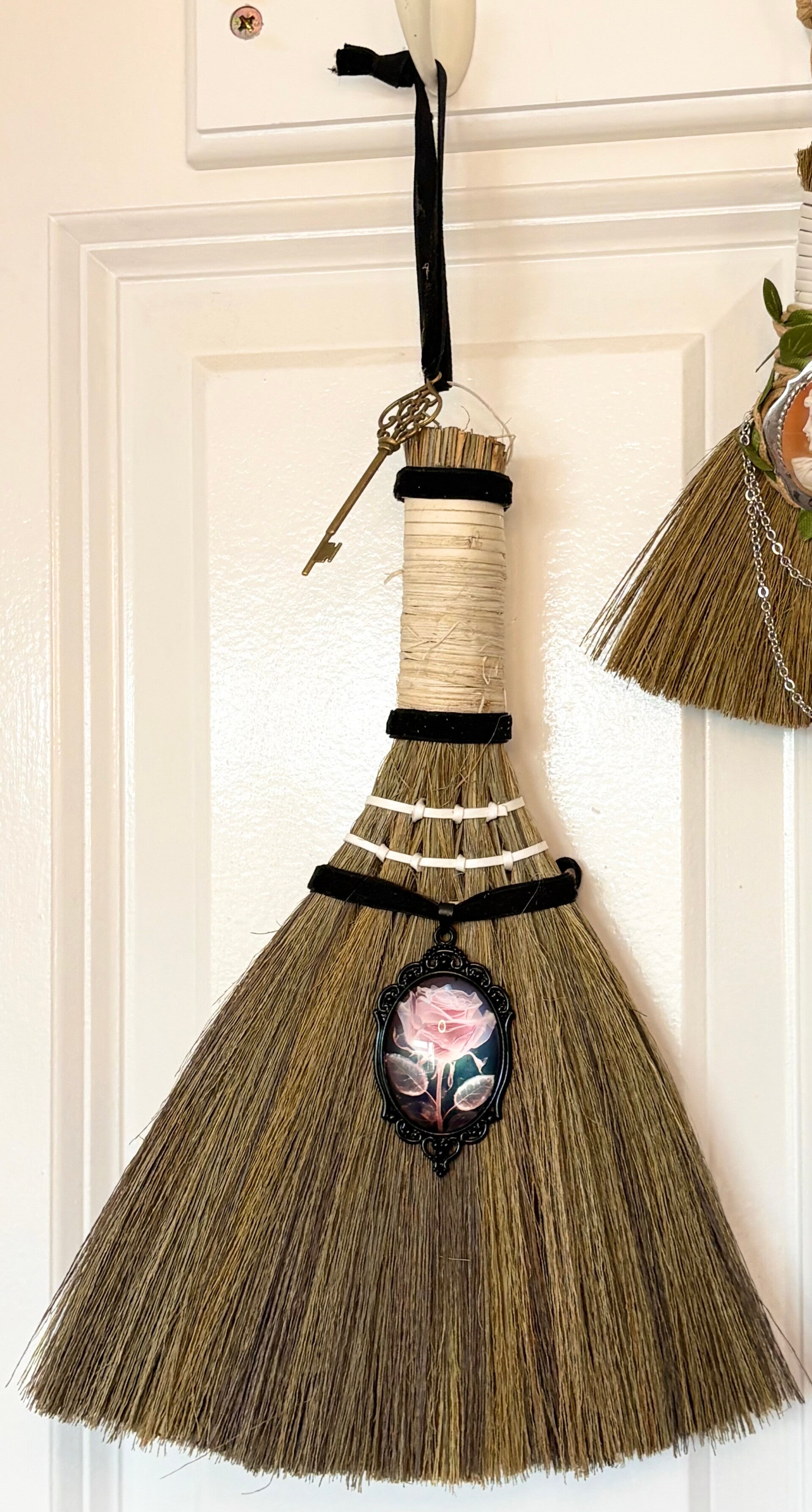Inspired by traditional besoms used in symbolic energy cleansing, this hand-decorated broom is designed to represent protection and emotional resilience.