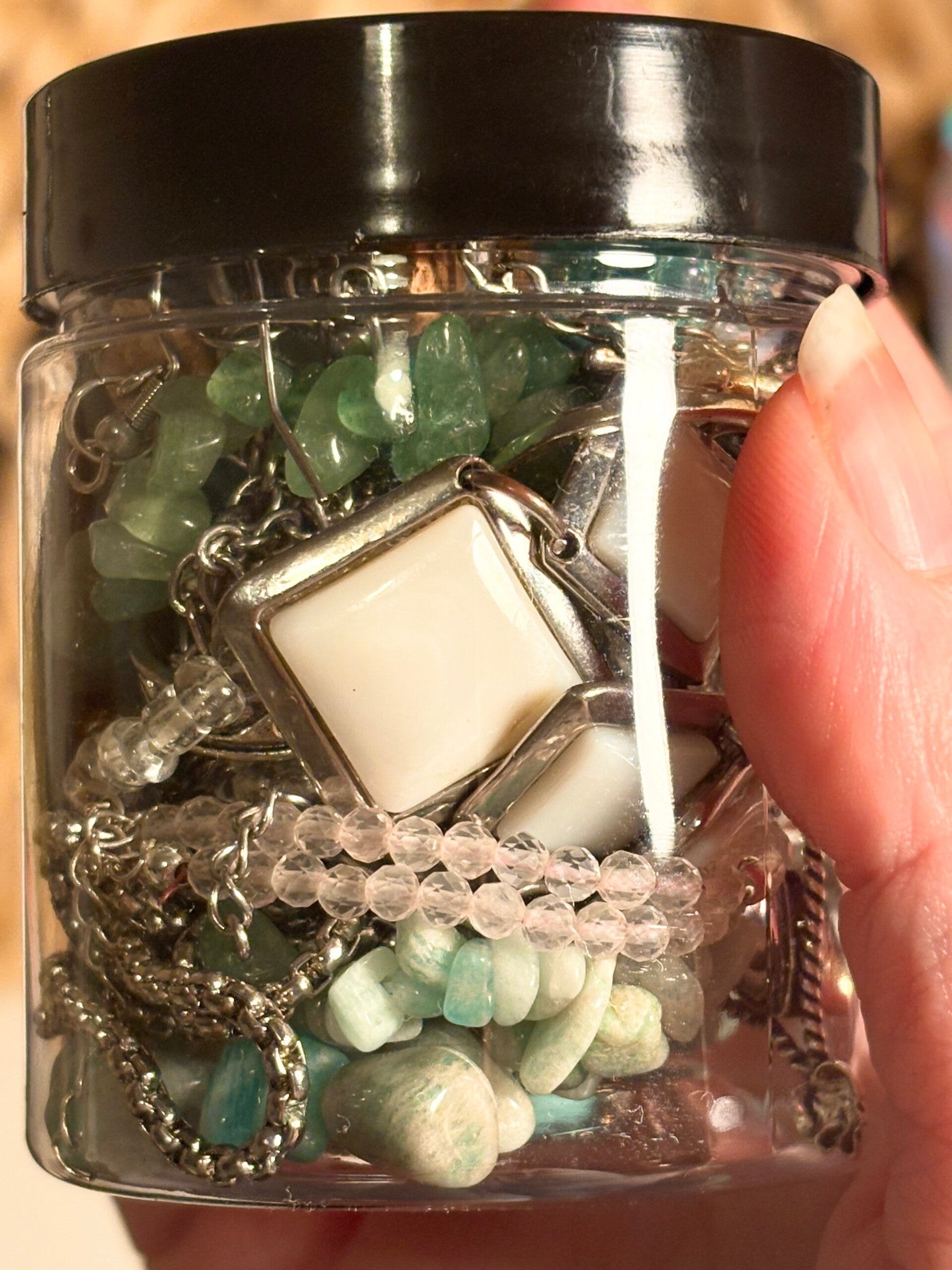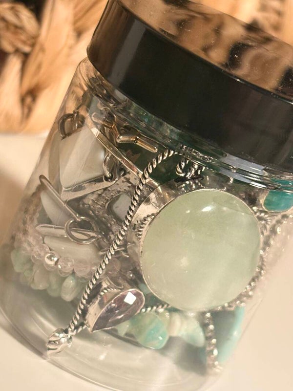 Each mini mystery jar is packed with a gorgeous mix of jewellery pieces and sparkly finds — from rings and pendants to beads and hidden treasures just waiting to be discovered. No two jars are ever the same, making every one completely unique 💫
